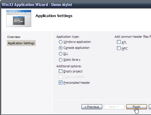 sẽ tạo một project mới cho bạn, với tên bạn đặt và header đã được biên dịch sẵn là stdadx.h